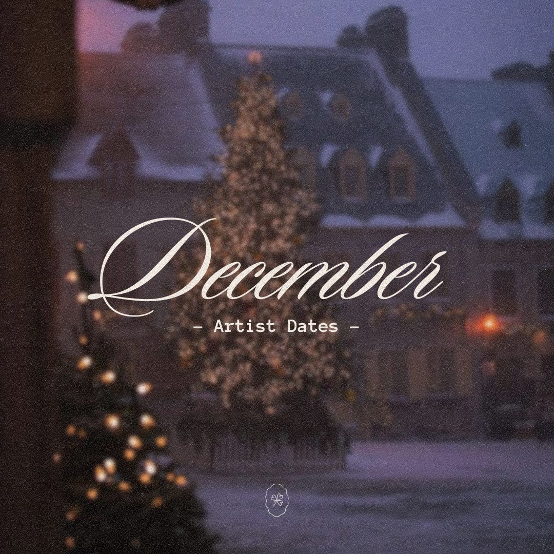 𖥔 The rest of the Winter Artist Dates are for paid subscribers—Inside I explore the full 12 weekly dates; gentle prompts, creative pauses, and small practices that help you stay connected to yourself when the season gets louder or heavier. It’s slow, cosy, reflective, and designed to be a seasonal creative guide you can return to each week. If you’d like to join us and get the full guide, you can upgrade below. Thank you for being here, and for supporting quiet long-form work in a world that moves fast.